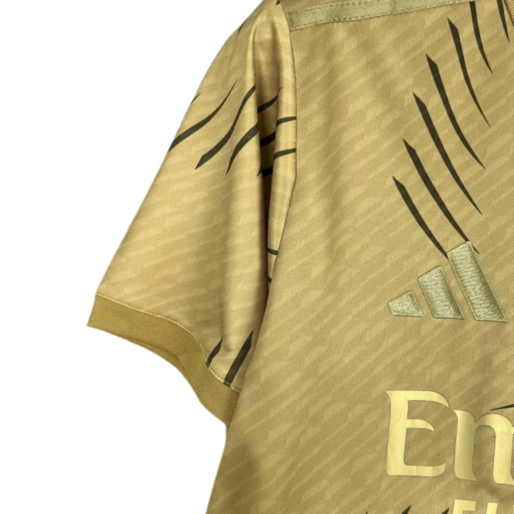 Si vous choisissez de personnaliser votre maillot avec un badge de compétition (par ex. Coupe de la Ligue, FA Cup, Ligue des Champions, Ligue Europa ou Ligue Conférence), le nom et le numéro seront imprimés avec la police spécifique utilisée par le club pour cette compétition durant cette saison.