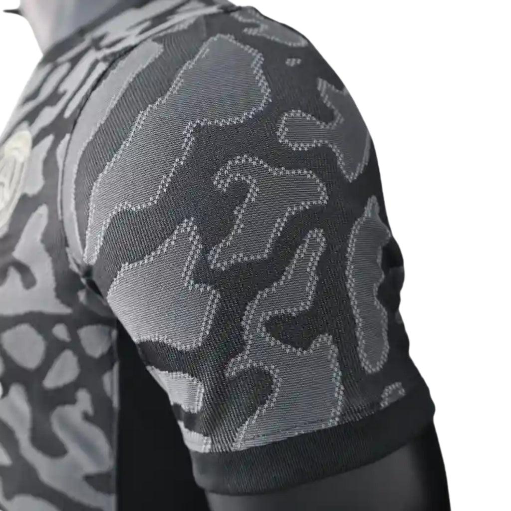 Si vous choisissez de personnaliser votre maillot avec un badge de compétition (par ex. Coupe de la Ligue, FA Cup, Ligue des Champions, Ligue Europa ou Ligue Conférence), le nom et le numéro seront imprimés avec la police spécifique utilisée par le club pour cette compétition durant cette saison.
